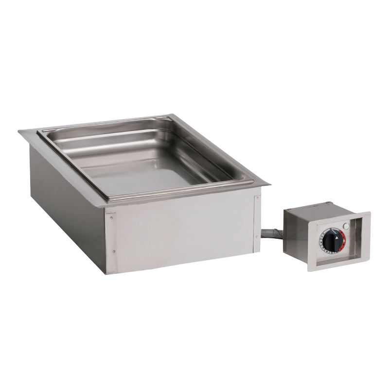 Adjustable thermostat. The 100-HW hot well comes with an adjustable thermostat on a remote-located control. Thermostat also can be flush-mounted into a countertop.
