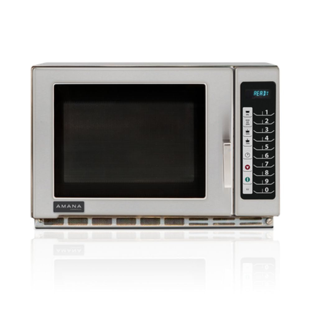 The Amana 1.2 Cu Ft Medium Volume Commercial Microwave is built for professional kitchens that need speed, consistency, and reliability. With 1200 watts of power and a spacious interior, it easily handles everything from reheating to boost heating. Designed for convenience, it features programmable touch controls, multiple cooking stages, and intuitive one-touch operation—making it ideal for quick-service restaurants, cafeterias, delis, and other busy food service environments.