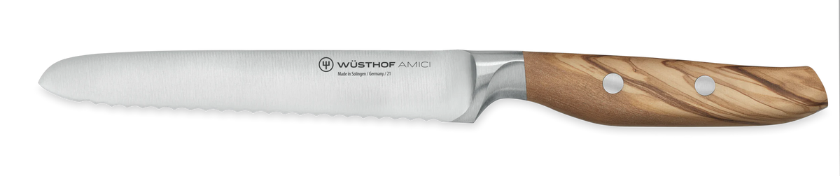 The WÜSTHOF Amici Serrated Utility Knife combines artistry, comfort, and functionality, making every slice a celebration of flavor and tradition.
