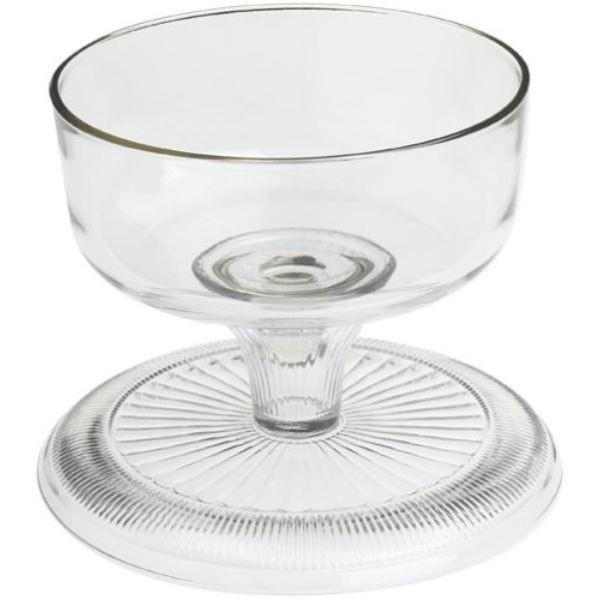 Anchor Hocking Canton Glass Cake Stand with Cover, a classic dome and plate set crafted from durable clear glass. This cake dome set, made in the USA, elegantly displays desserts for any occasion.
