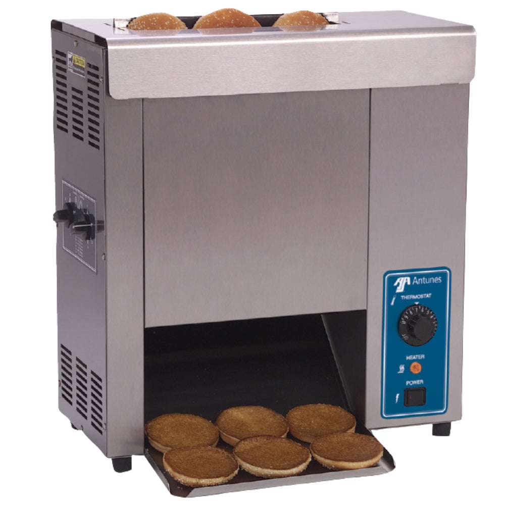 The Antunes Vertical Contact Toaster is a trusted solution for high-volume foodservice operations, delivering consistent, golden-brown buns quickly and efficiently. Its vertical design saves counter space while providing superior toasting performance for a variety of bread products.