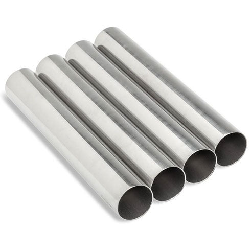 Ateco Cannoli Form Set, a 4-piece stainless steel kit for crafting authentic Italian cannolis. Each cannoli form, measuring 5.63" long and 0.88" in diameter, ensures perfect, uniform shells, ideal for home and professional bakers.