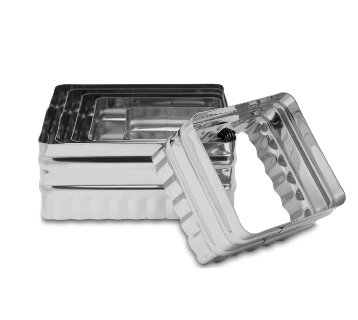 This versatile cutter set from Ateco includes a range of square-shaped cutters with both straight and fluted edges, perfect for cookies, pastries, fondant, and more. A great addition to any baking toolkit.