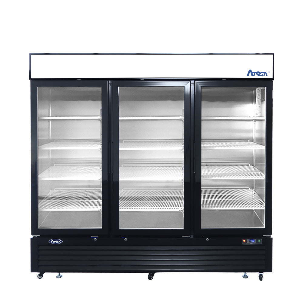 Atosa MCF8724GR 81" Merchandiser Refrigerator with 3 Glass Swing Doors, Black Exterior