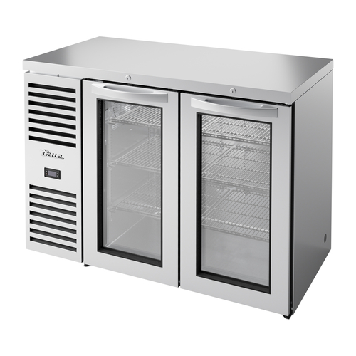 True 48" Back Bar Refrigerator with 2 Glass Doors & Right Compressor, Stainless Steel