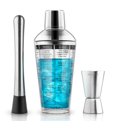 Bar Tools Included: Stainless steel muddler for crushing ingredients, and a double jigger with ounces stamped on the exterior and centilitres on the interior for accurate measurements