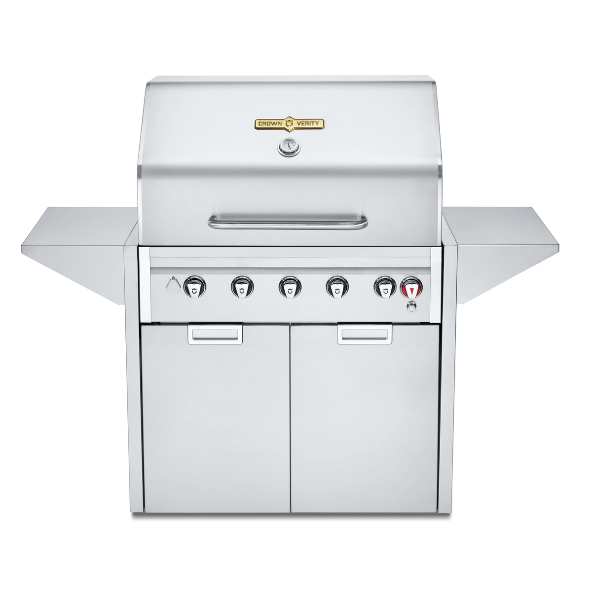 Crown Verity IE36MLP Estate Elite 36" BBQ / Charbroiler with Roll Dome, Bun Rack & Two Door Cabinet, Propane