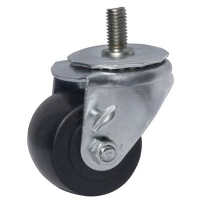 - Threaded Stem Caster Kit in POP Box, (4) 2.5" diameter, 1/2" x 1" threaded stem, polyolefin wheel with brake, 220 lb capacity, resistant to oil and grease, double ball bearing, operational temp range -45° to 180°F, zinc plated.