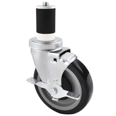 Caster Kit, work table POP box, includes (4) 5" diameter expanding stem, Fits 1-5/8" OD tubing, non-marking polyurethane tread, top lock brake, 300 lb. capacity, resistant to acids & caustics, double ball bearing, operational temp range -45° to 180° F, zinc plated.
