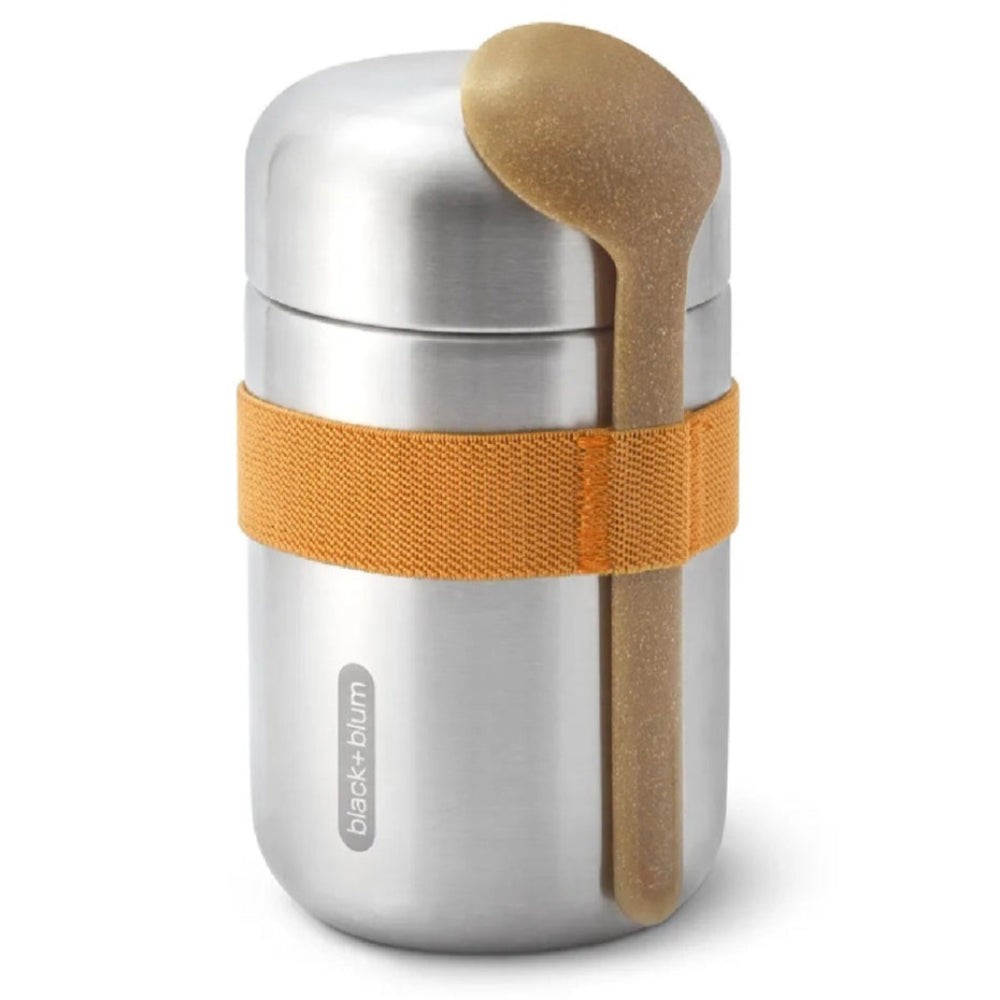 Black + Blum 400 ml Food Flask With Wood Fibre Spoon, Orange