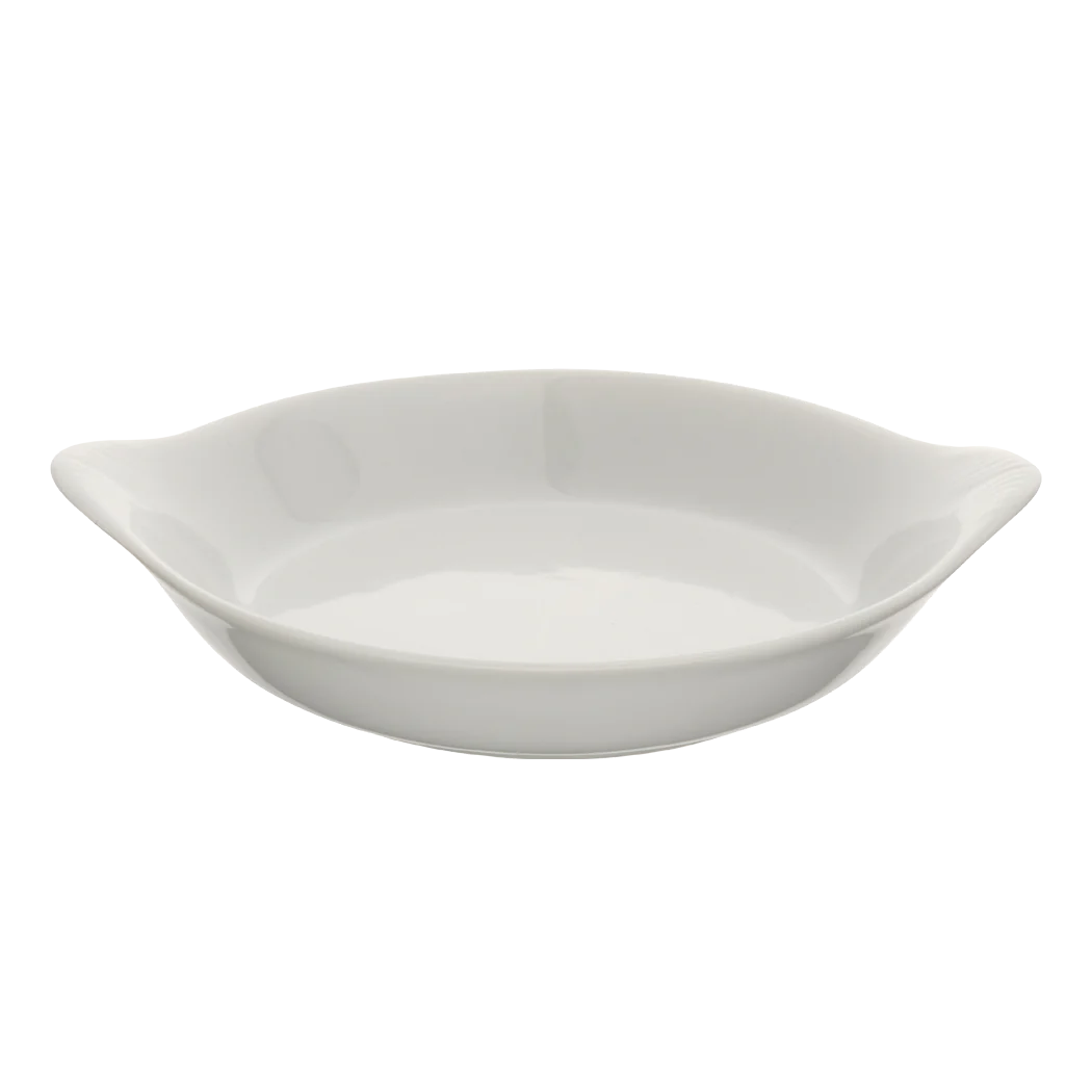 The Browne 10 oz Au Gratin Dish is a beautifully crafted, round porcelain dish perfect for baking and serving your favourite gratins, casseroles, and individual portions. Its 6.5" diameter and 10 oz capacity make it ideal for small servings, while the classic white porcelain provides an elegant touch for any table setting.