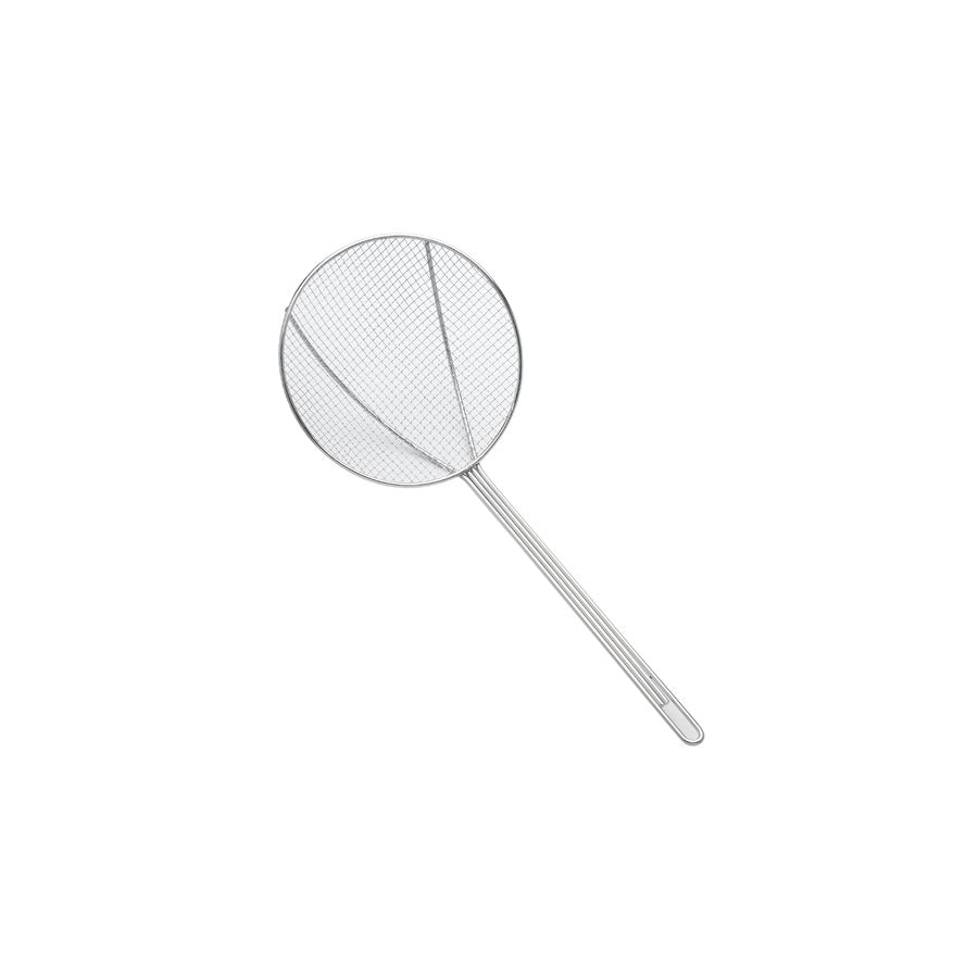 8" Round Mesh Skimmer – The large 8" diameter mesh provides ample surface area to quickly and efficiently remove food from hot liquids or oils.