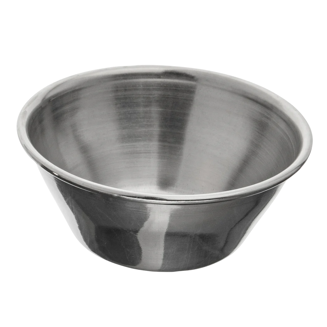 The Browne 4 Oz Sauce Cup, Stainless Steel is a versatile and durable tool perfect for serving sauces, dressings, or small portions of food. With its sleek design and high-quality construction, this sauce cup is an ideal addition to any dining or kitchen setting.