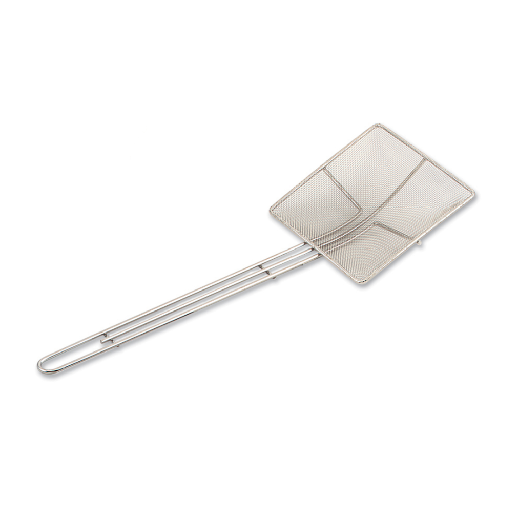 Square Fine Mesh Design – Measures 6.5 inches by 6.5 inches, perfect for skimming and straining a variety of foods with precision and ease.
