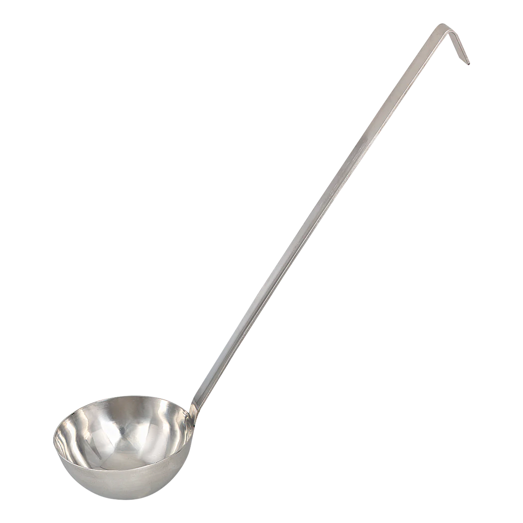 The Browne 8 Oz Heavy Duty Ladle with 13.5" Handle is expertly designed for durability and efficiency, making it a reliable tool in any professional kitchen. Crafted from premium 18/8 stainless steel with a seamless one-piece construction, this ladle offers superior strength and hygiene, ideal for high-volume service.