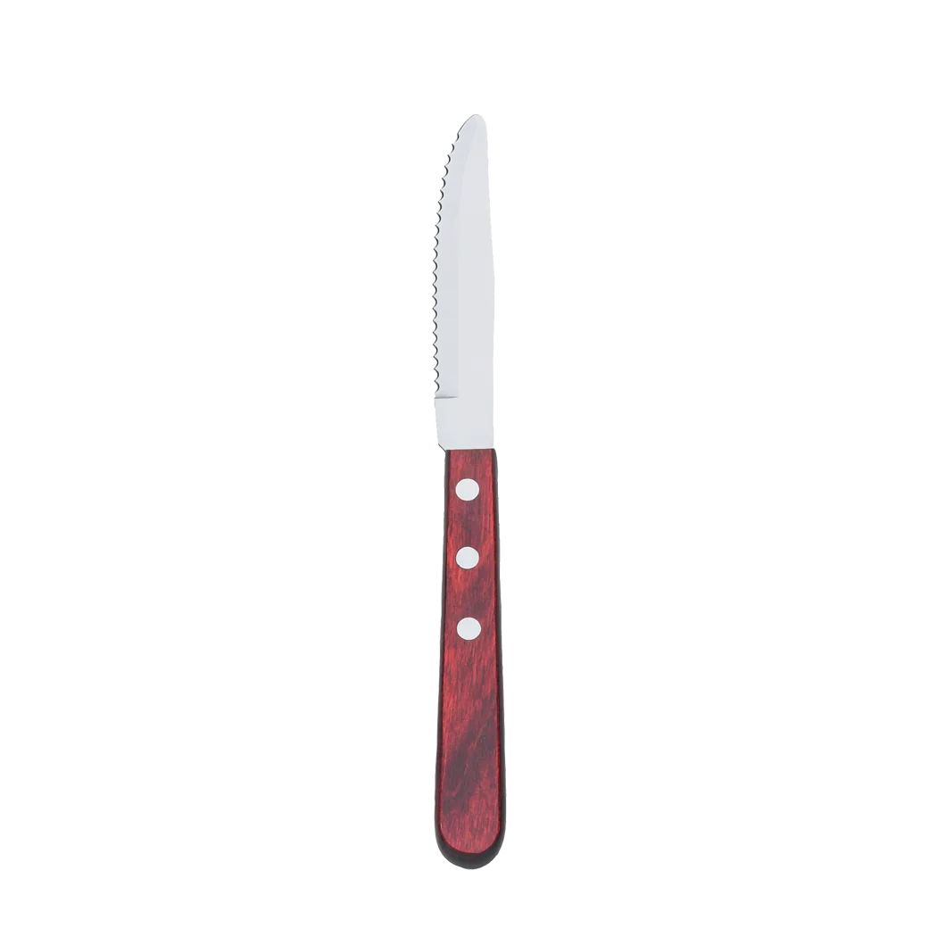 The Browne Ridgeline Steak Knife with Rounded Tip and Wooden Handle is designed for steak lovers seeking precision and style. Perfect for restaurants, steakhouses, or home dining, it effortlessly slices through meats like sirloin and ribeye, making every meal—from everyday dinners to special occasions.
