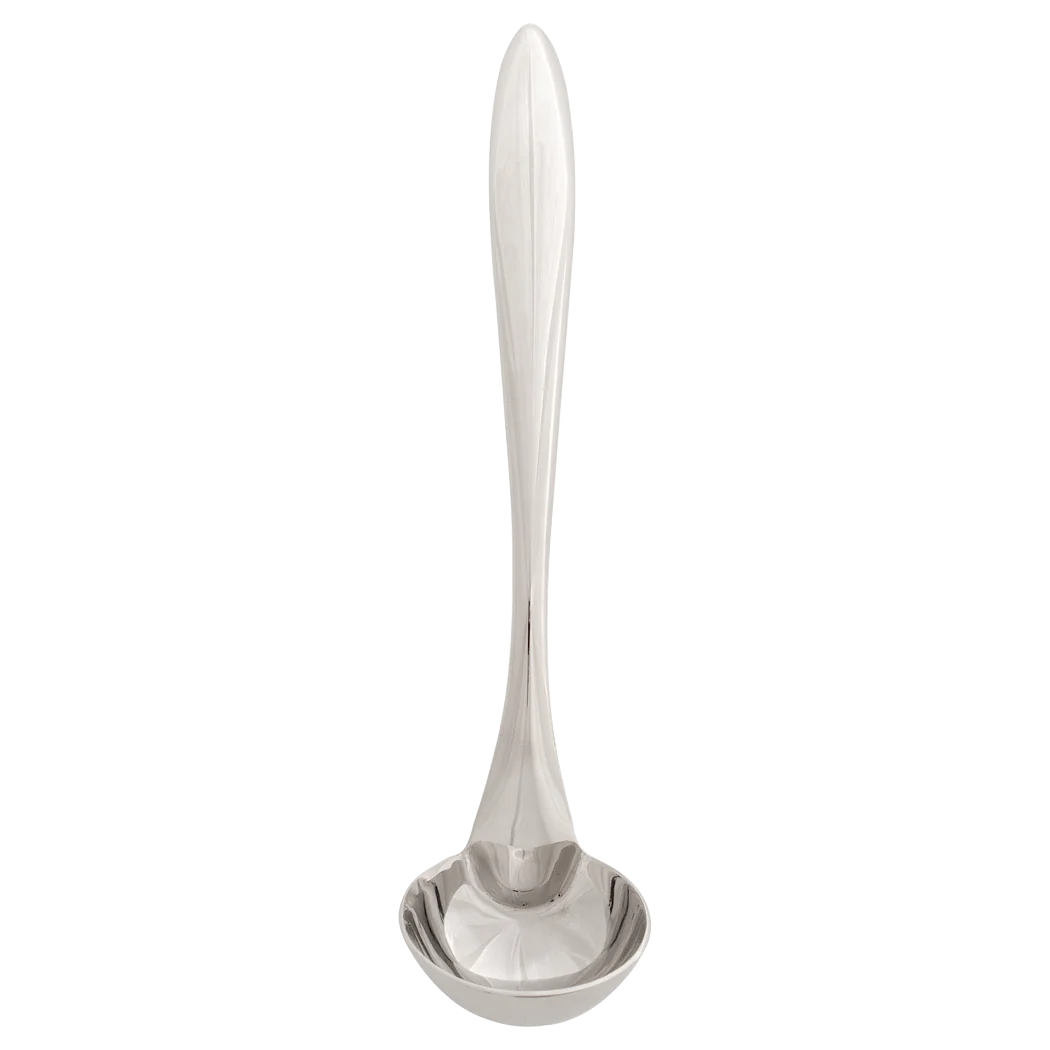 The Browne 57 3170 Eclipse 15" Serving Ladle is expertly crafted from durable 18/8 mirror-finish stainless steel, offering both long-lasting durability and an elegant appearance. The ladle features a "Stay Cool" tapered, hollow handle design, providing a comfortable and secure grip for effortless serving. Its unique arc handle design allows for easy pickup and reduces slippage in serving ware. Measuring 15" in length, this ladle is perfect for serving soups, stews, sauces, and more, combining practicality with sophisticated style for any kitchen or dining setting.