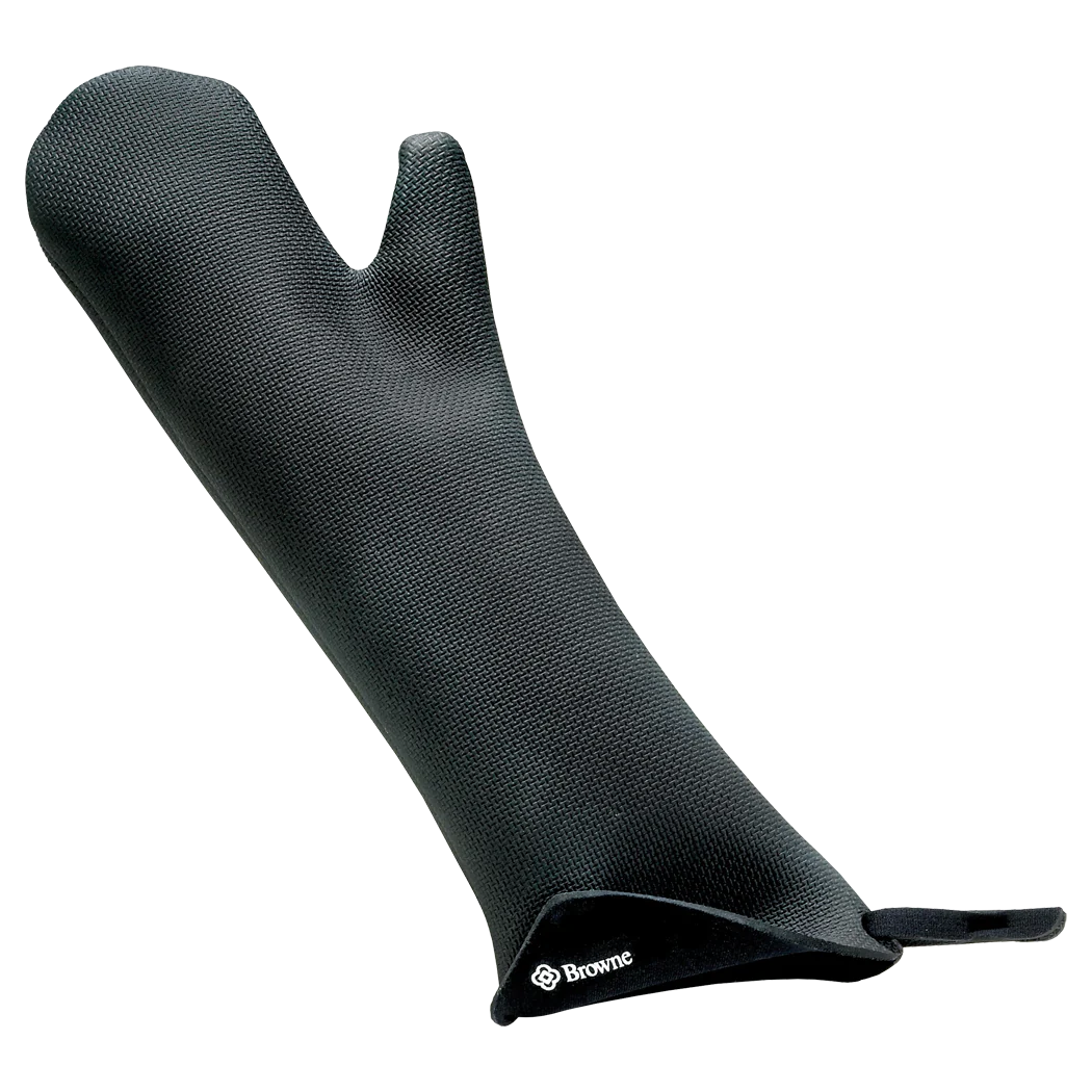 The Browne KitchenGrips Pro 18" Oven Mitt, Black is a high-performance, durable oven mitt designed to provide superior heat protection and comfort. Perfect for professional kitchens and home use, this mitt offers excellent coverage and safety when handling hot cookware.