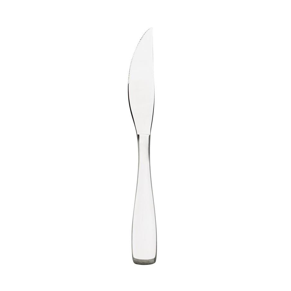 The Browne 50 3012 Modena Steak Knife is a premium-quality tool designed for precision and ease when cutting through meats. With a length of 9.25 inches, this steak knife is crafted from durable 13/0 stainless steel, ensuring strength and long-lasting performance. Its serrated edge effortlessly slices through steaks, roasts, and other meats, providing a smooth and comfortable cutting experience.