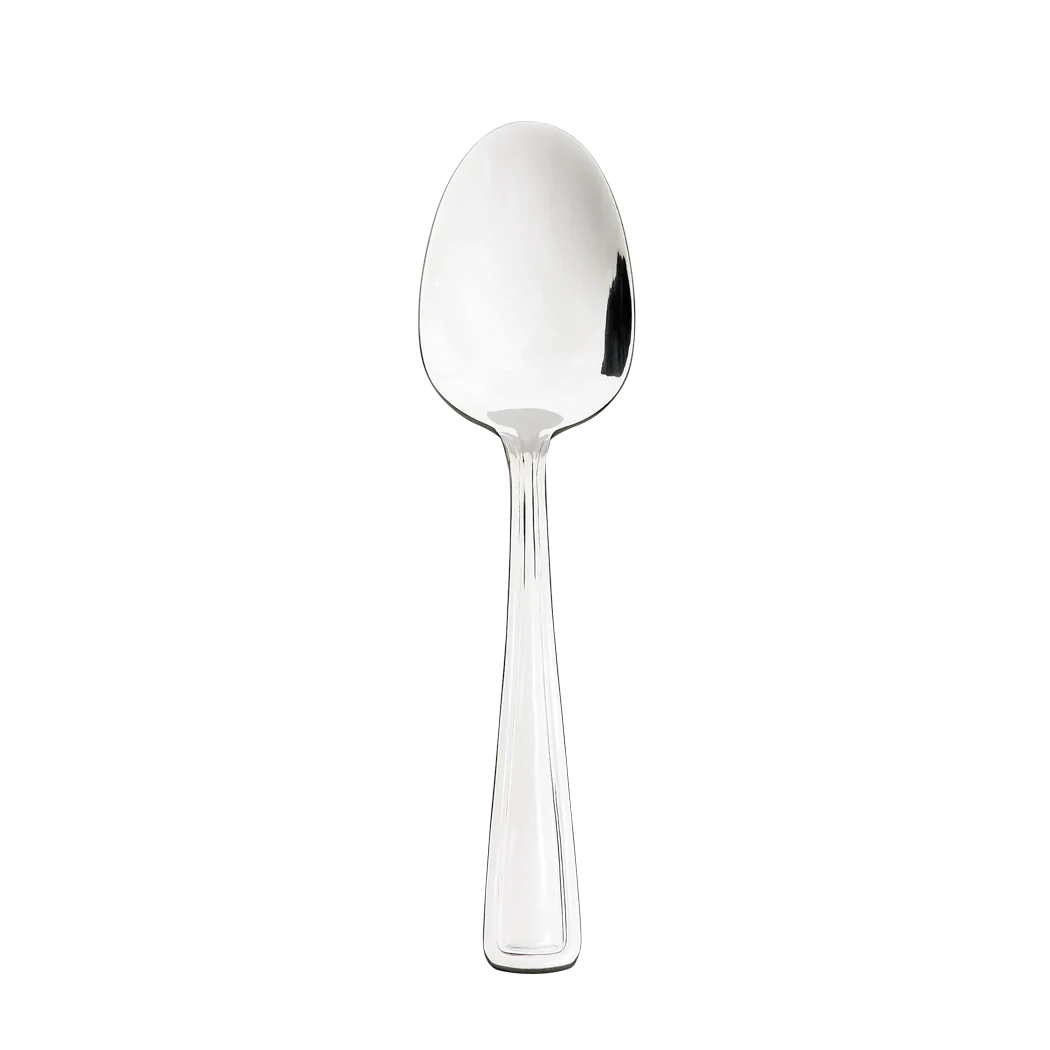 The Browne 50 2602 Royal Dessert Spoon is elegantly designed with a simple double ridge pattern on the handle, making it a perfect choice for both casual and formal dining. Crafted from durable 18/0 stainless steel, this spoon features knives made from 13/0 and has a beautiful mirror finish that adds a touch of sophistication.