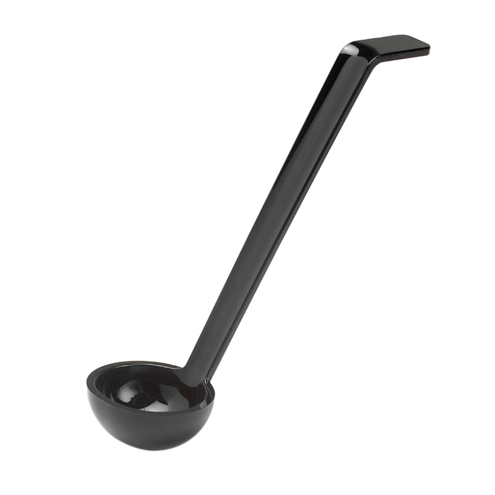 Cambro LD85110 0.75 Oz Black Ladle's serve perfectly portioned dressings and sauces. Ideal for catering, prep stations, and food courts, this Camwear Ladle serves 0.75 Oz and is designed with a side rest to avoid messy slippage. Constructed from virtually unbreakable Camwear in four colors, an angled handle ensures easy, comfortable handling.