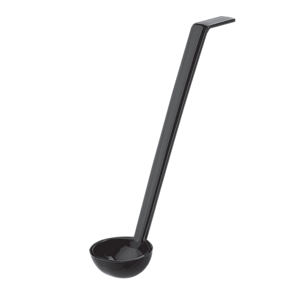 Cambro LD105110 1 Oz Black Ladle's serve perfectly portioned dressings and sauces. Ideal for catering, prep stations, and food courts, this Camwear Ladle serves 1 oz. (29,6 ml) and is designed with a side rest to avoid messy slippage. Constructed from virtually unbreakable Camwear in four colors, an angled handle ensures easy, comfortable handling.