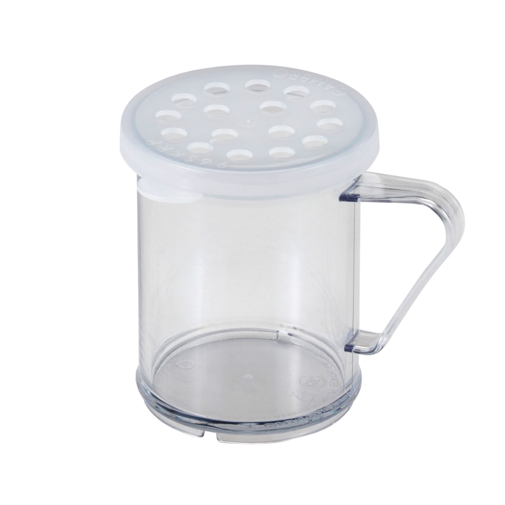 Cambro 96SKRP135 Camwear 10 Oz Shaker / Dredger with Parsley Lid are a staple for prep and self-service stations in the front and back of house. This cover is perfectly sized for medium ground seasonings. An attractive solution to condiment stations and table service, color-coded lids identify contents at a glance and efficiently serve contents. Designed from crystal-clear, shatter resistant Camwear, shakers offer safe, lasting service without the hassle of glass.
