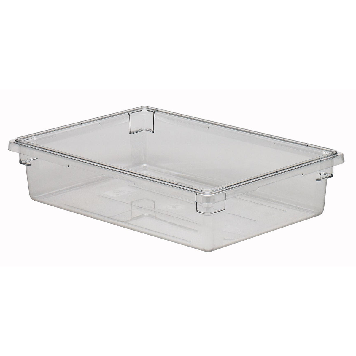 Extend freshness and eliminate contamination when you store product in the Cambro 18266CW135 8.75 Gallon Food Storage Clear Container! This design is virtually unbreakable, allowing for easy inventory and minimal handling from storage to prep. Withstands temperatures -40°F to 210°F (-40°C to 99°C), acids, stains, and odors for a long-lasting improvement on your storage system.