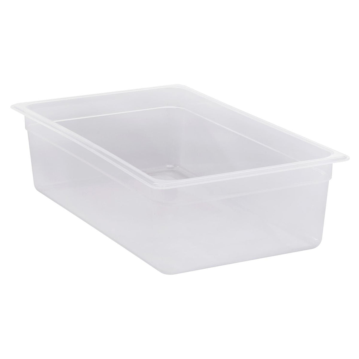 The Cambro 16PP190 Full Size Translucent Food Pan is the economical choice to store, transport, and serve all-in-one, precisely designed to Gastronorm specifications! Outstanding for prep stations and transporting in Cambro top loading carriers, this solution is translucent food-safe plastic for easy inventory. The non-stick smooth interior surface guarantees better yields and savings on waste, while promoting easy cleaning – safe for commercial dishwashers!