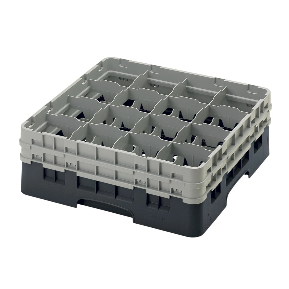Cambro 16S534110 Glass Rack with 16 Compartments & 2 Grey Extenders - Black Base