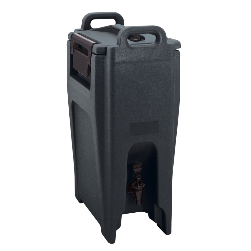 The Cambro UC500110 Ultra Camtainer 5.25 Gallon Black Insulated Beverage Dispenser is the perfect contemporary, heavy duty beverage server for front or back of house. Ideal for catering and outdoor events, the Ultra Camtainer maintains the temperature of hot or cold beverages for at least 4 hours. The Ultra Camtainer is designed with a drip-free, recessed spigot that can release continuous or individual dispensing depending on how you are serving.