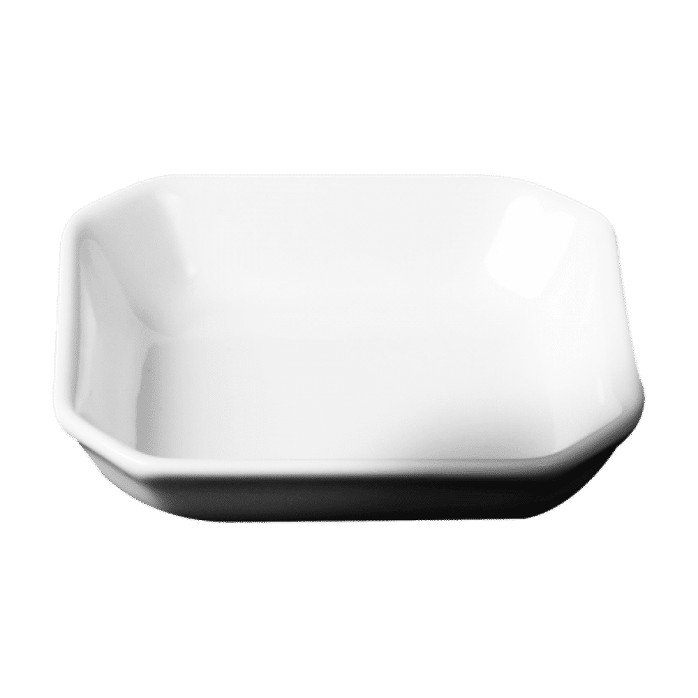 Cameo China’s Square Saucer offers a sleek and compact solution for presenting sauces, condiments, amuse-bouches, or tasting portions. With its modern square shape and bright white finish, it adds a touch of refinement to any dining presentation.
