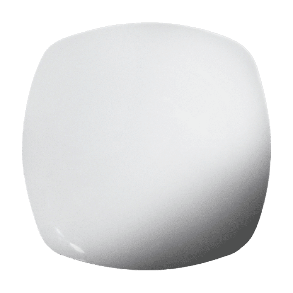 - Design: Modern square shape with a flat surface and subtle rim for refined presentation.