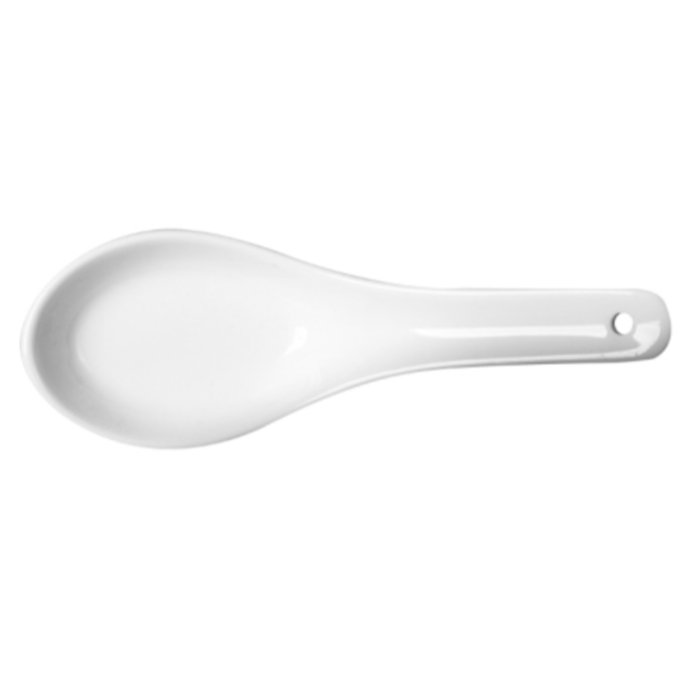 - Design: 5" ceramic soup spoon with a smooth, curved bowl and a built-in hanging hole for convenient storage or display.