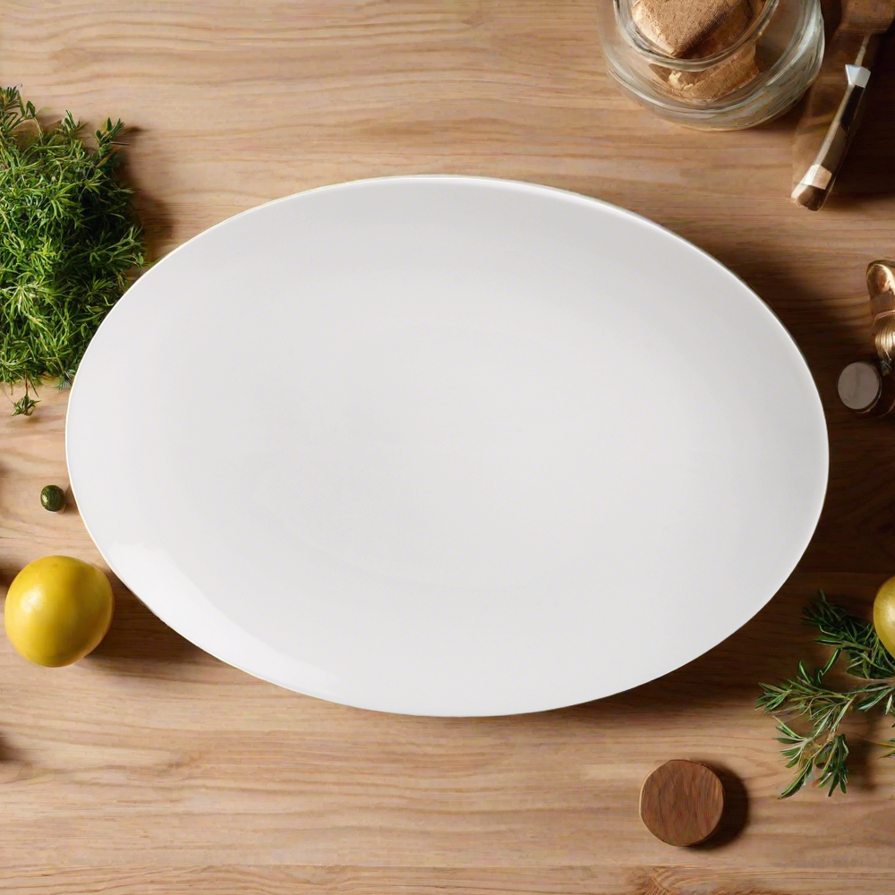 - Design: Sleek oval coupe shape with smooth, rimless edges for contemporary presentation and efficient plating.