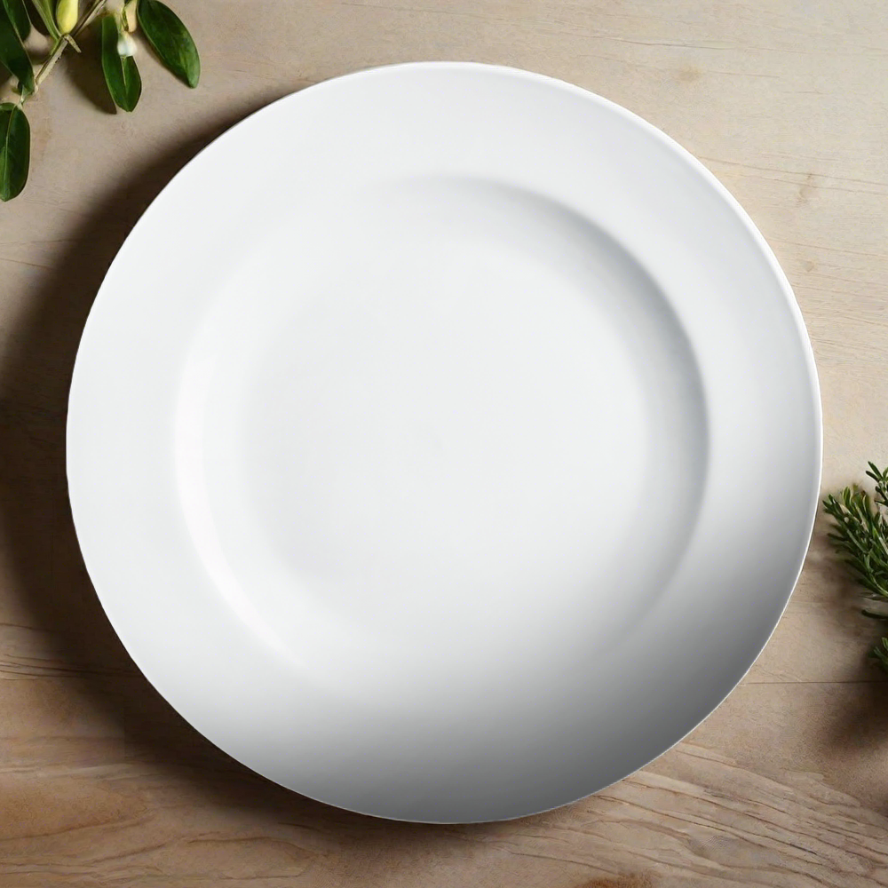 Elegant, durable, and generous in size, the Imperial White Rim Plate is designed to elevate large-scale culinary presentations with timeless appeal.