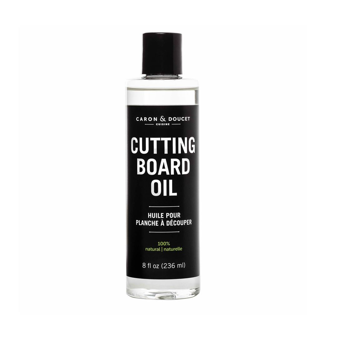 The Caron & Doucet Cutting Board Oil, a 100% plant-based oil crafted from renewable ingredients. This cutting board oil moisturizes and conditions wooden kitchenware, preventing drying and cracking while eliminating odors.