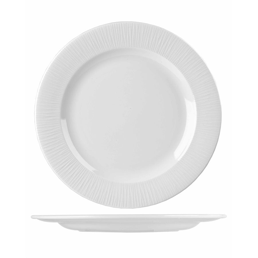 Elevate your dining experience with the Churchill Bamboo 10.25" Footed Plate. Featuring a modern and delicate embossed design that embodies the true essence of natural bamboo, this plate is ideal for both large-scale banquets and restaurant dining.