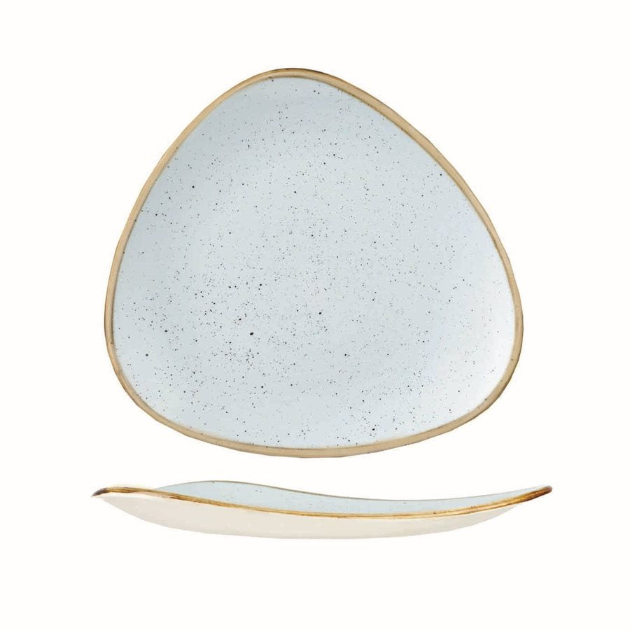 Rustic charm comes alive with the Churchill SDESTR7 Triangle Plate, featuring a hand-painted colour wash in a soft Duck Egg Blue accented by golden brown speckles and a rustic edge. Inspired by the vibrant colours of spring, this plate provides an ideal backdrop for showcasing fresh ingredients. Its versatile design makes it suitable for both casual and fine dining settings.