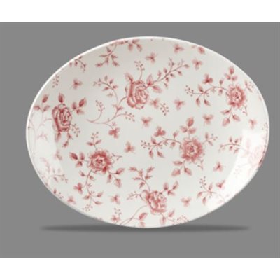 Churchill Vintage Prints 12.5" x 10" Oval Plate, Cranberry Rose Chintz, 6 /Case - RCC OP12