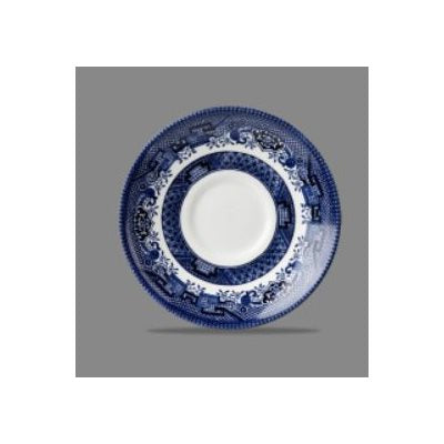 The Churchill BWL GTS Vintage Prints 5.5" Georgian Saucer in Blue Willow perfectly complements your tea service with its elegant vintage design. This saucer, crafted with attention to detail, features a stunning blue willow pattern that enhances any table setting.