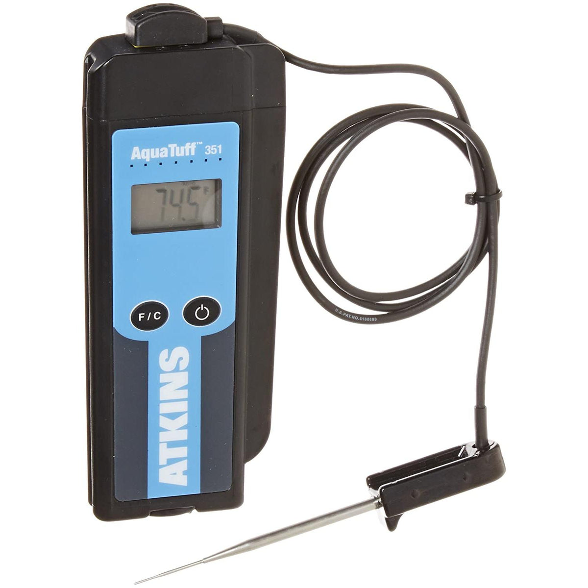 he Cooper-Atkins AquaTuff™ Waterproof Thermocouple is the perfect solution for your temperature measurement needs. With its digital display, this thermocouple is capable of displaying temperatures in the range of -100 to 500°F (-73 to 260°C) with an accuracy of ±0.9°F (±0.5°C) total system at ambient temperatures between 68° to 86°F (20° to 30°C). Its Wrap&Stow™ MicroNeedle™ probe is designed to provide accurate readings in even the toughest of environments, while the auto shut-off feature helps conserve battery life. The LCD display and ABS plastic housing make it easy to use and the compact size of 7-1/8" x 2-3/4" x 1-1/3" (181mm x 70mm x 33mm) allows for convenient storage. This thermocouple is NSF, CE, RoHS, NIST, and WEEE certified and includes (2) AAA batteries, making it a reliable and efficient choice for your temperature measurement needs.