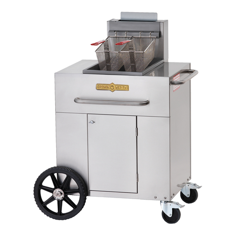 The Crown Verity CV-PF-1NG 35-40 lb Portable Single Tank Outdoor Fryer brings all the functionality of your indoor kitchen outdoors with this compact and sturdy Crown Verity mobile fryer. Our Pro fryers are designed to cook high volumes of product in a short period of time. The fryers are for outdoor use only. With 14” wheels, they are easy to move, making them ideal for caterers, party rentals and special events.