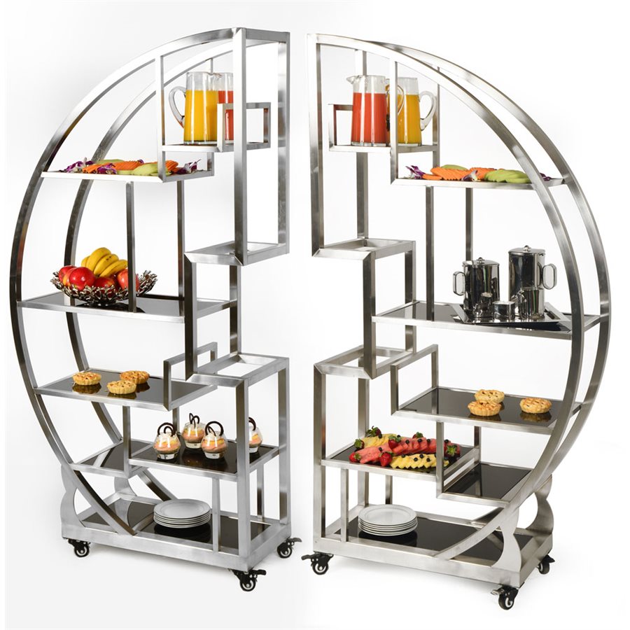 Add visual interest and a touch of class to any venue with Eastern's beautiful Cartwheel Rolling Buffet. With striking looks under any lighting scheme, it’s the perfect platform for every occasion. It offers plenty of tray space, making it easy to transfer and display drinks, salads, appetizers, desserts and more.