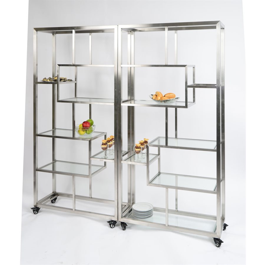 Eastern Tabletop Square Rolling Buffet Set with Clear Shelves, Stainless Steel, 71" x 14" x 73"