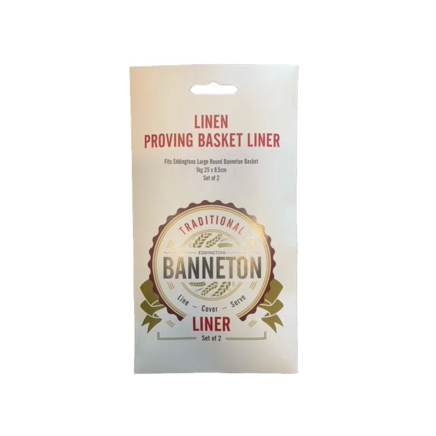 Eddingtons Large Round Proving Basket Liner Set, a key accessory for artisan baking. This set includes two linen liners, sized 25x8.5cm (10x3.5 inches), designed for the EDD70101 Round Large basket, enhancing dough proving with durable, high-quality fabric.