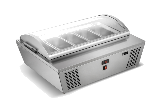 The Versa Display Series FGCM-5P Gelato Countertop Freezer is a compact and stylish solution for showcasing gelato, ice cream, and frozen desserts. With a curved folding glass lid, stainless steel exterior, and digital temperature controls, it delivers both durability and eye-catching presentation for your shop, café, or restaurant.