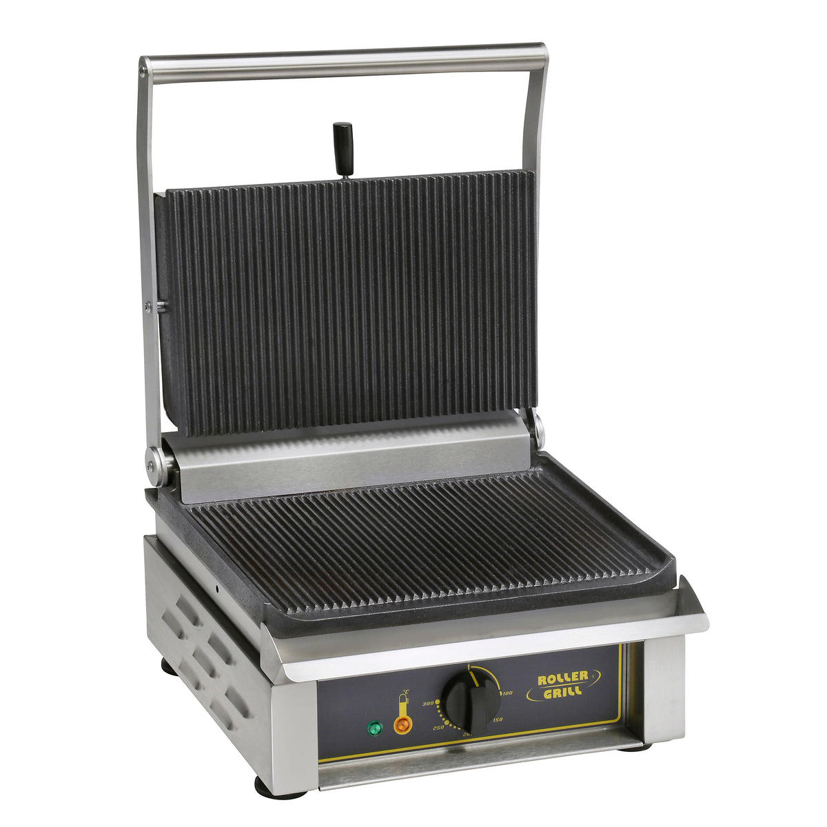 - Fine Grain Cast Iron Plates: Retains heat and provides even cooking, with both grooved and smooth surfaces for grilling versatility.