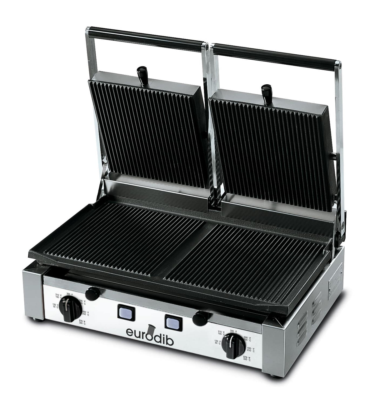 Eurodib 20" x 10" Double Panini Grill with Grooved Top & Smooth Bottom Grill Surface 220V