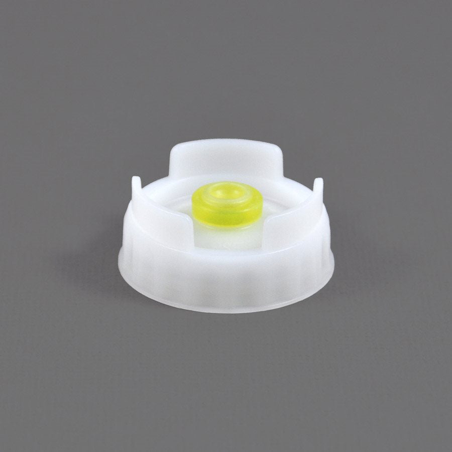The Fifo Medium Valve Dispensing Caps, Yellow, a versatile solution for controlled sauce dispensing. These NSF-certified caps, with removable valves, fit all Fifo Bottles, ensuring precise medium portions of smooth sauces, ketchup, mustard, or mayo for restaurant or home kitchens.